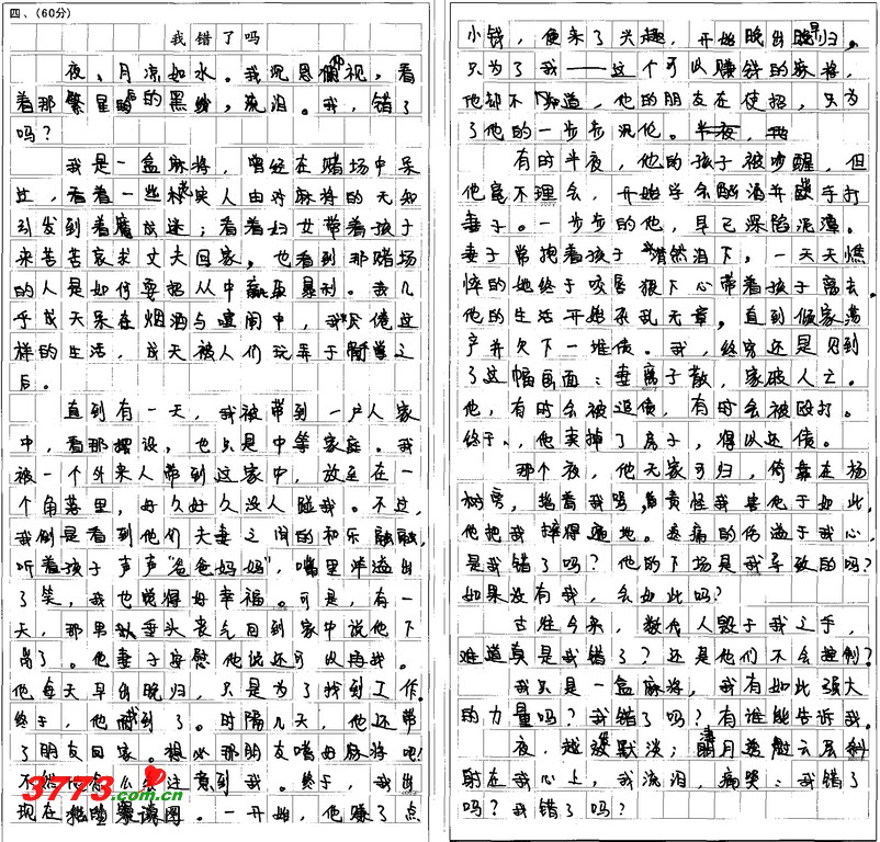 2012莆田中考满分作文我错了吗(擢英中学吴方冰)