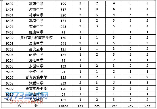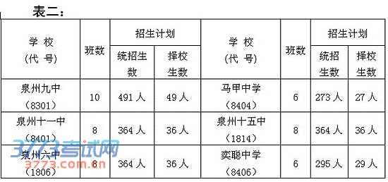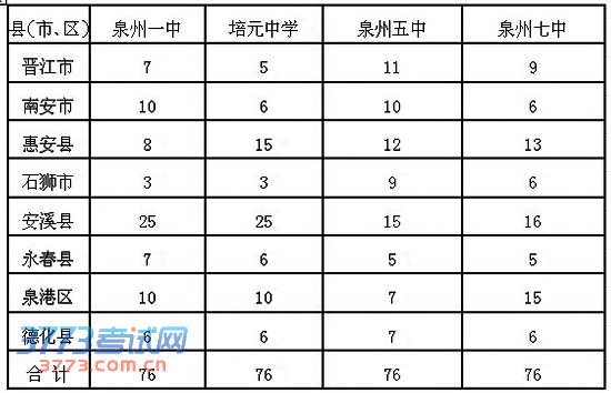 泉州市区4所省一级达标高中面向外县市区招生名额分配