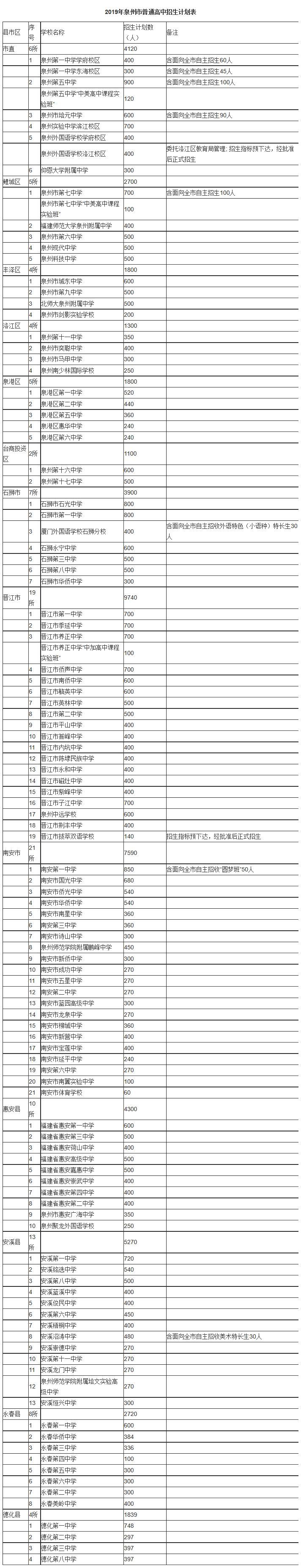 惠安县10所,计划招生4300人