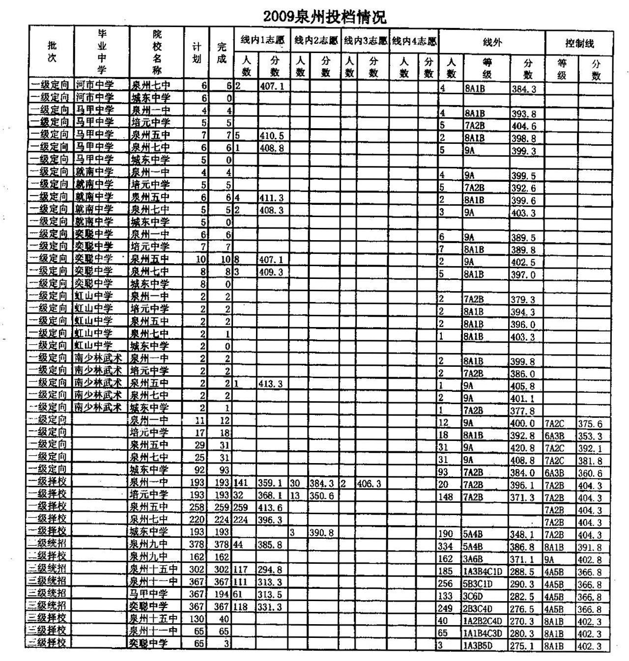 泉州一中、培元中学、泉州五中、泉州七中预计统招生录取