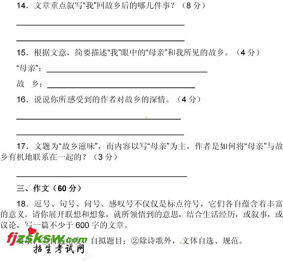 福建莆田2011中考语文试题及答案
