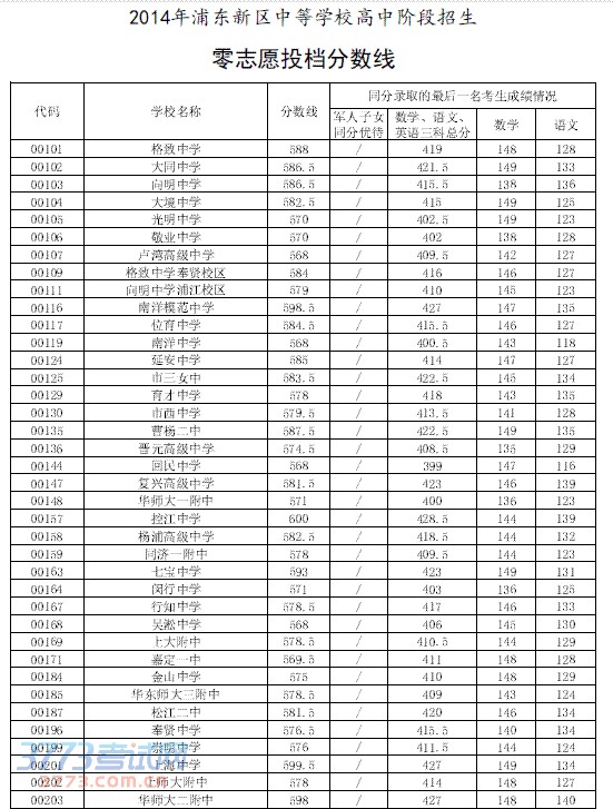 2014年浦东新区中等学校高中阶段招生零志愿投档分数线.pdf