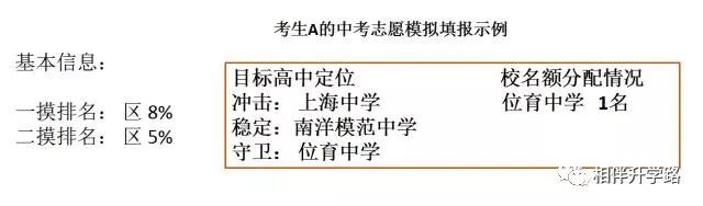 3. 一志愿: 上海中学, 南洋模范中学, 位育中学 (因为徐汇区只允许填报三个市重点高中)最后可以再填一个区重点作为报底学校以防万一。