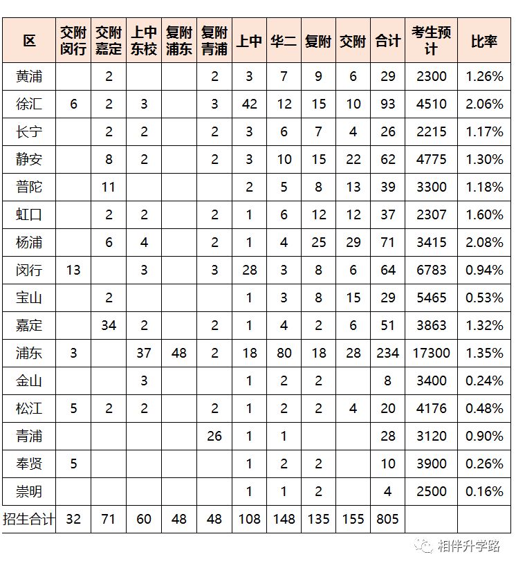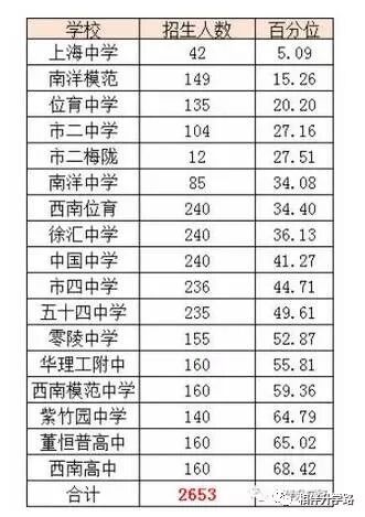 徐汇的同学, 可以参照下面这张定位表来进行定位(去年的招生数,每年变化不大)