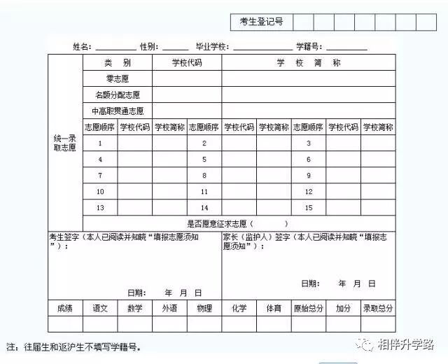 2.通知零志愿的学校要填比一志愿学校档次高的学校,以免低报,也就是分数考得高, 被低一等的高中早早录取的现象.