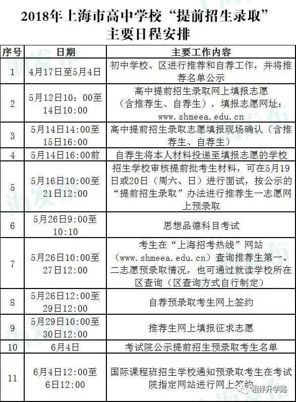 上海志愿中,第一档就是提前招生。提前招生的日程安排如下:
