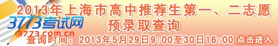 2013年上海市高中推荐生第一、二志愿预录取查询