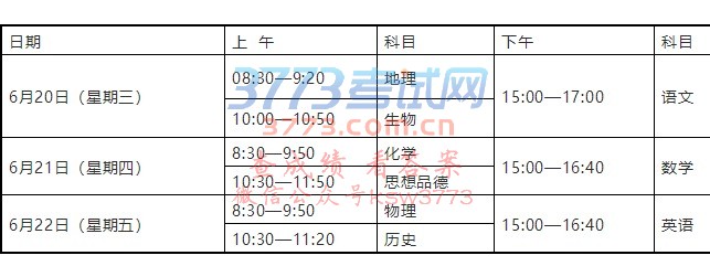 6月20日(星期三)08:30—9:20地理15:00—17:00语文