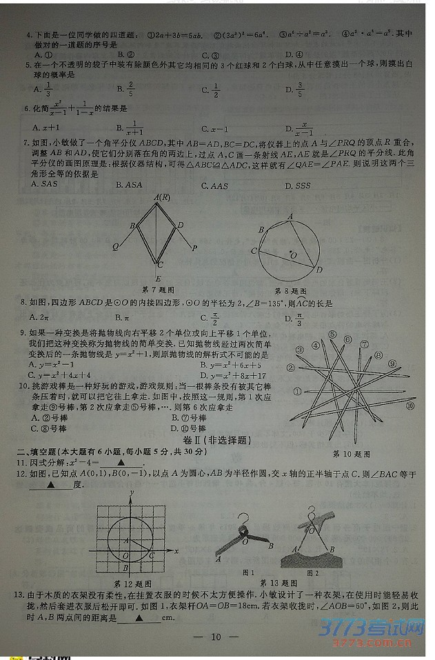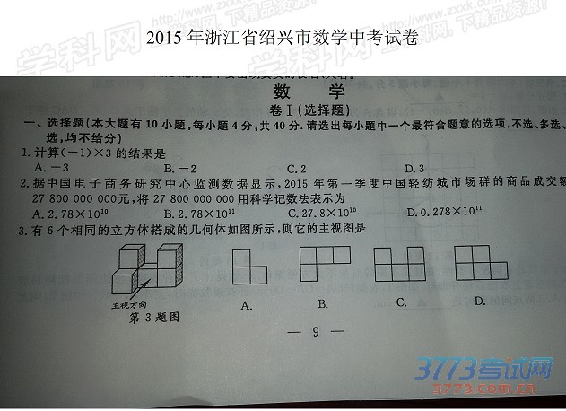 公布绍兴中考试题、答案和中考作文。祝各位考生都能取得好的成绩。2015年浙江绍兴市中考数学试题及答案: