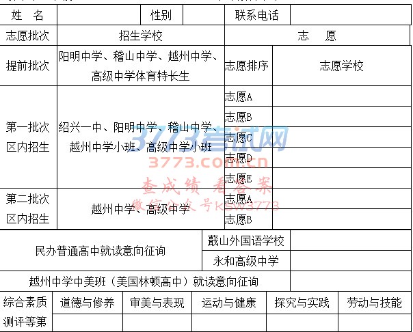 民办学校就读意向征询志愿:设蕺山外国语学校、永和高级中学、越州中学中美班3个志愿,有就读意愿的考生可填报,但不列入志愿批次、也不组织录取。