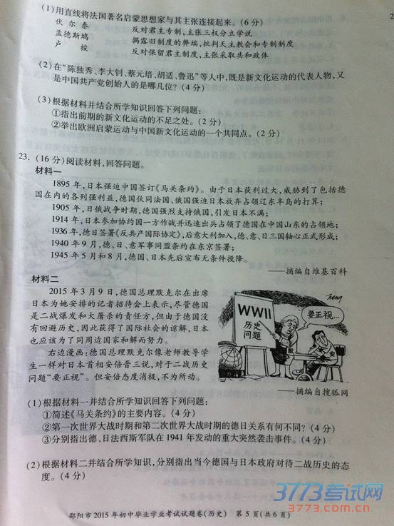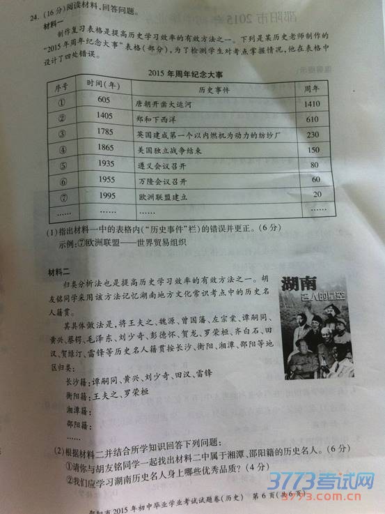 2015邵阳中考历史试题发布