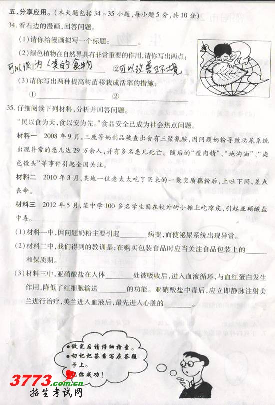 2012年邵阳市中考生物试题及答案