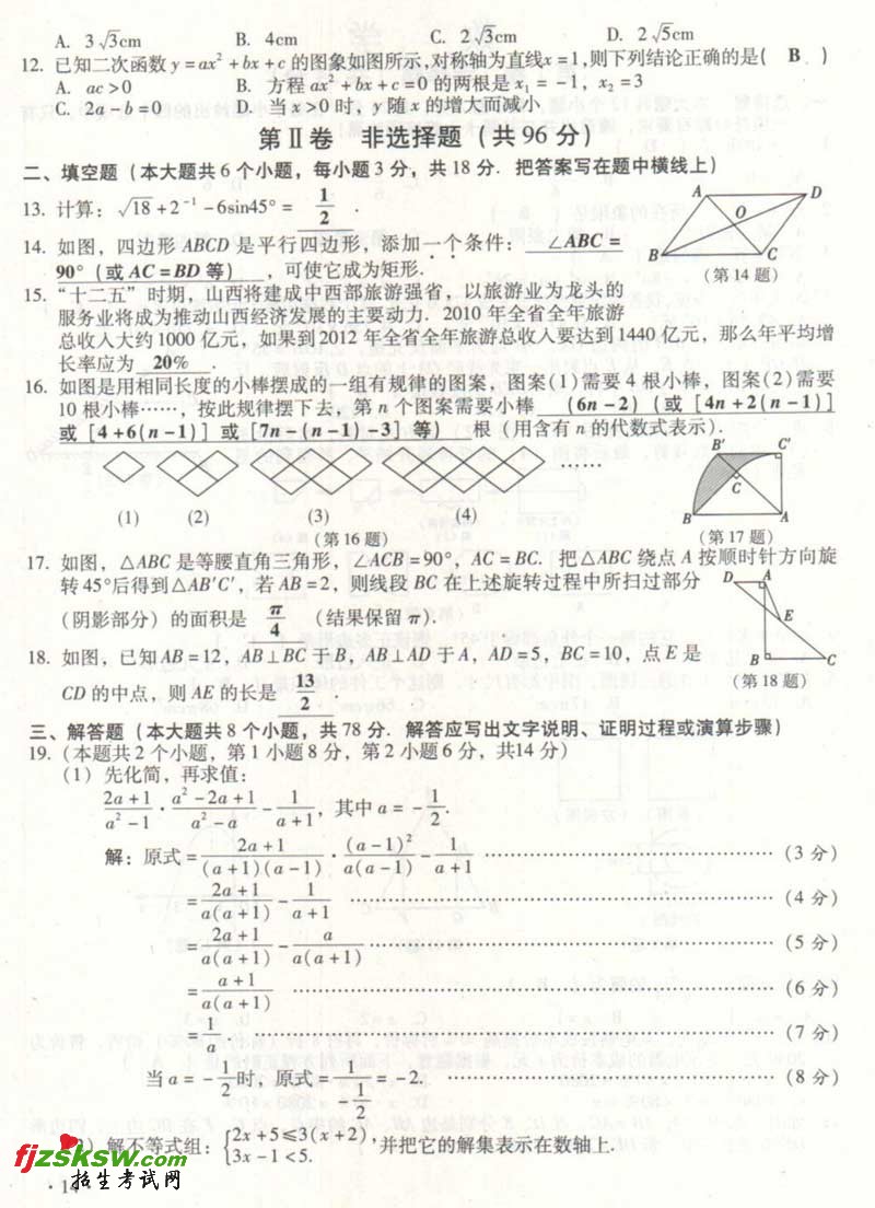 山西2011中考数学试题及答案