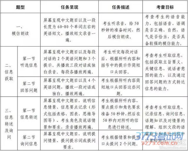 英语听说考试的题型、题量、分值和时间安排