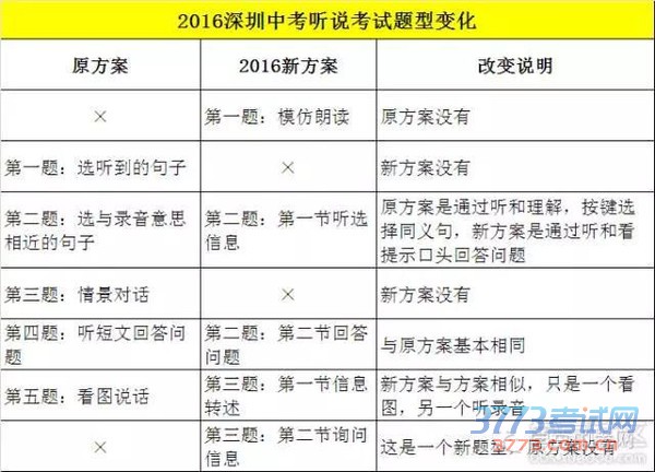 解读:这些貌似在高考的听说里也见过,看来为了最后的高考成绩稳拿全国,深圳也是拼了的节奏,以前各校就是不断吐槽,中考和高考无论是考法,还是考点都是存在严重断层现象,就是考取四大名校高中了,初中三年荒废了3年去嚼那些没有高中用途的中考知识,高中冲进名校的非四大名校生,不一样拼不过那些名校生,或是内地生,所以深圳的小升初竞争远远高于中考,因为初中读哪里就会决定你的后半生。现在深圳也是痛下决心,2015年取消语法选择题,改成语法填空题(和高考达成一致),2016年调整中考英语听说题(和高考达成一致)。再一次肯定了高考英语在高考中的重要性,是谁前面说高考英语不重要来着!拉出来,打32个板子!被坑的节奏!
