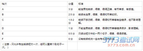 初中英语听说能力测试评分标准