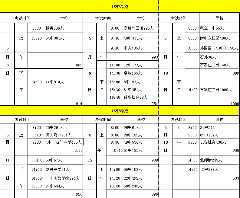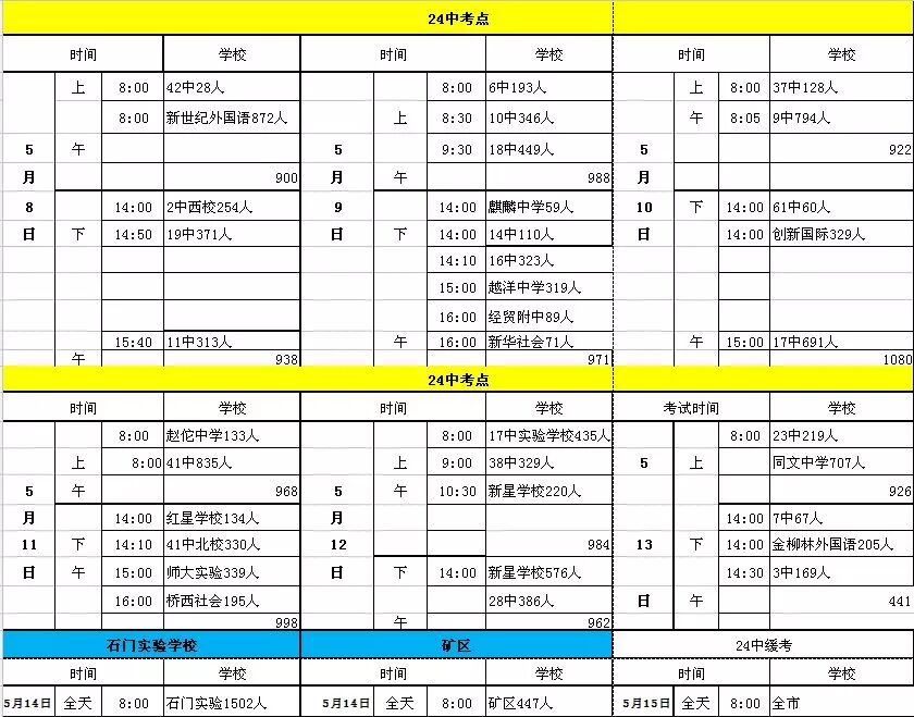 2018年石家庄市区初中升学体育考试时间安排(2)