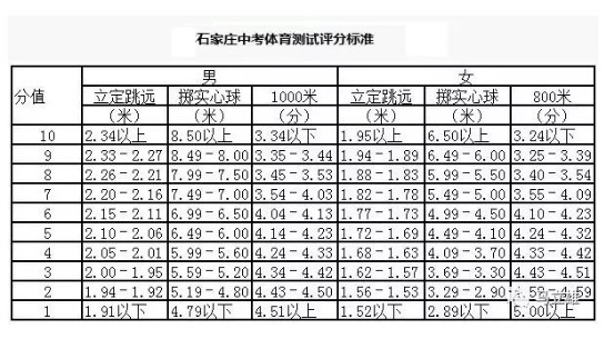 中考体育三项内容及评分标准