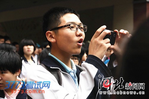 中考结束,走出考场的考生拍照留念。摄/王致欣
