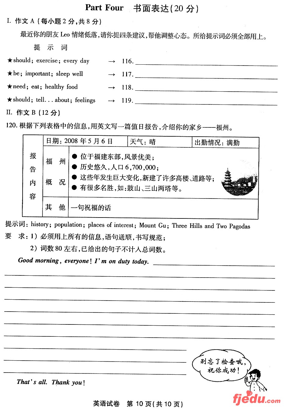2008年福州中考英语试题卷及答案