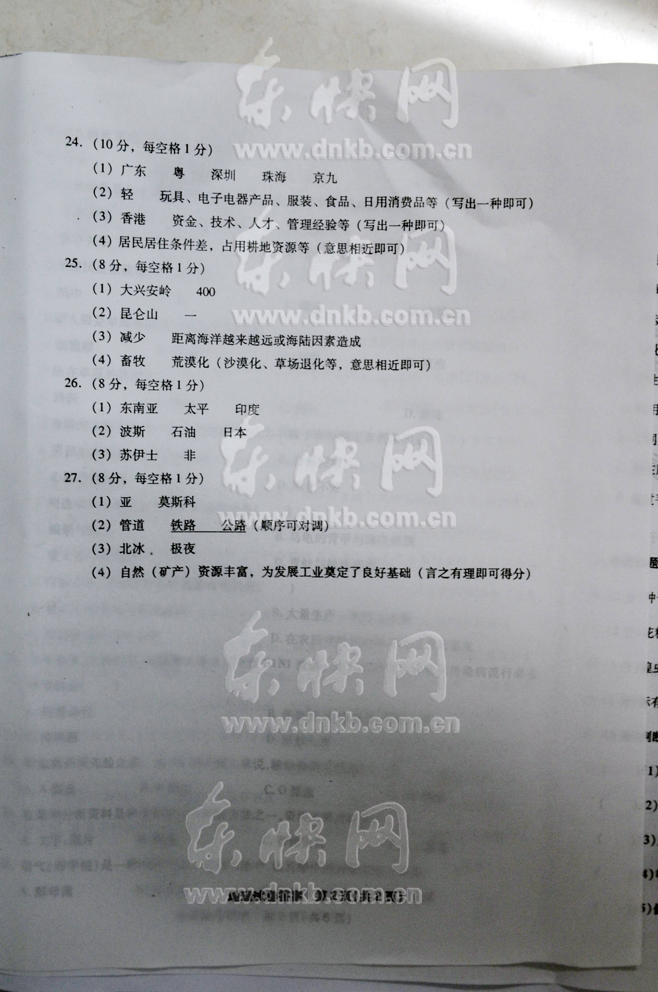 2009年福州市中考地理试题卷及答案