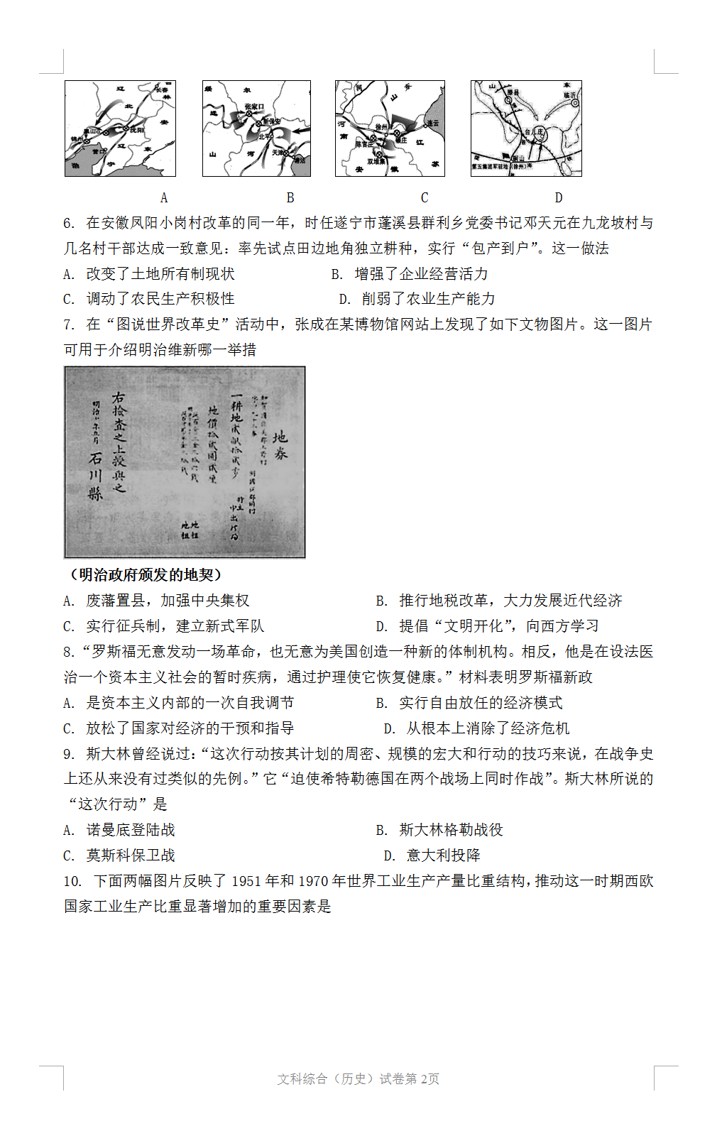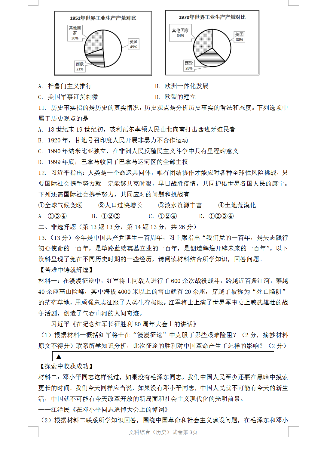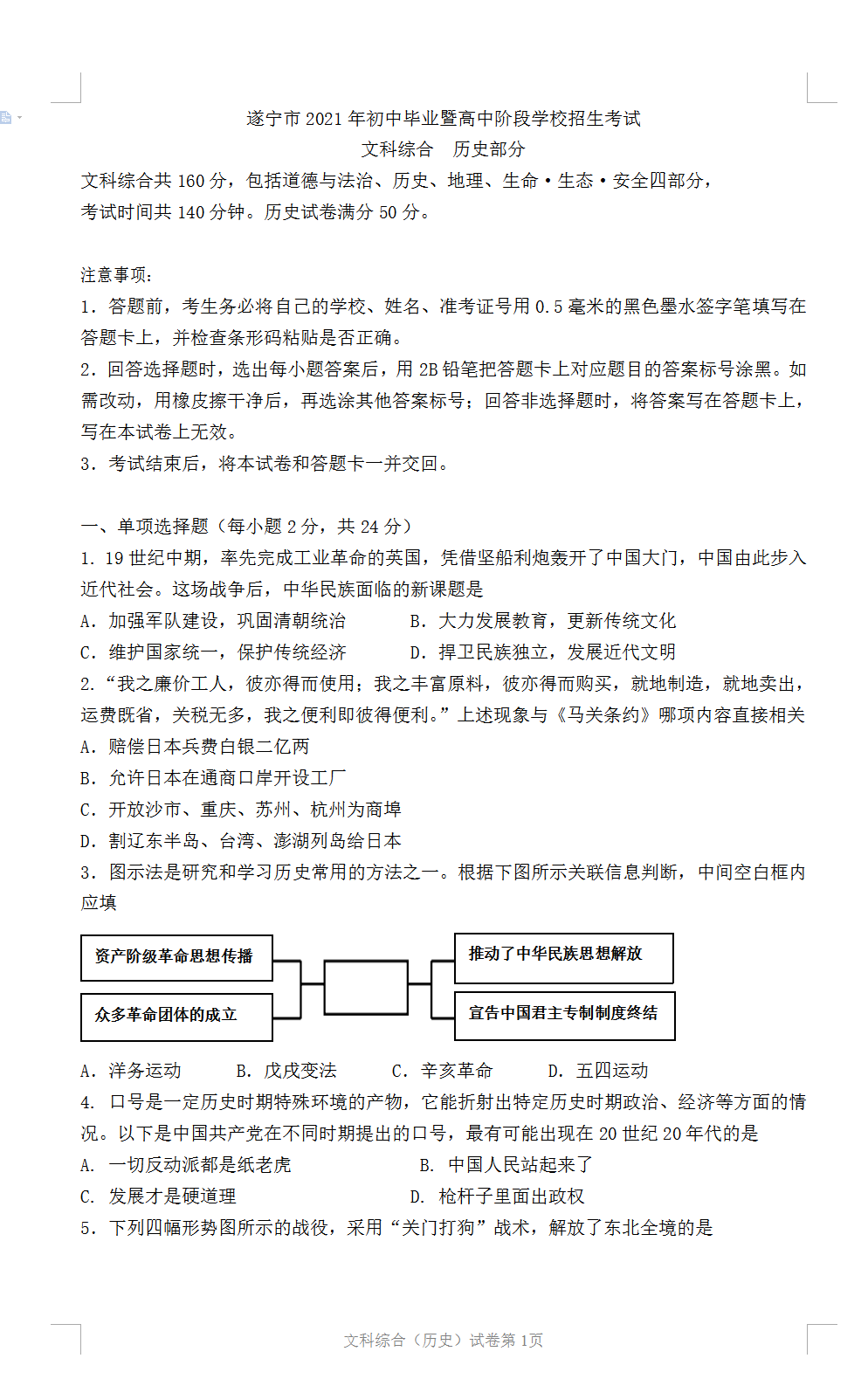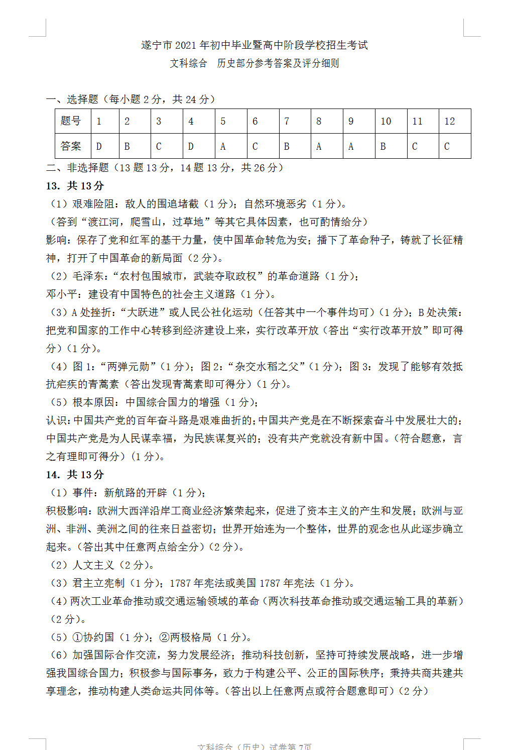2021遂宁中考历史试题及答案评分标准发布