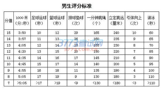 1。体育考试由统一考试和日常考核两个部分组成,总分50分(占中考总分6.76%),其中统一考试45分,日常考核5分。