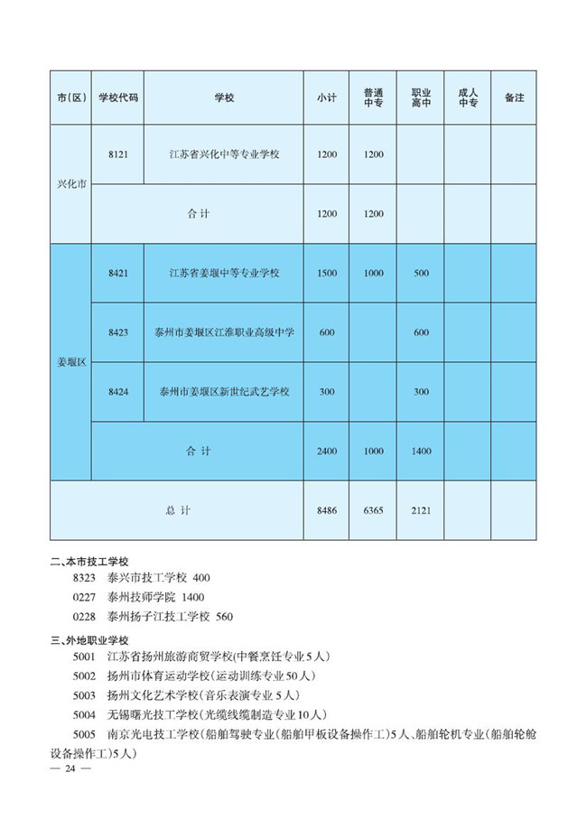 2015年泰州职业学校招生计划17271人