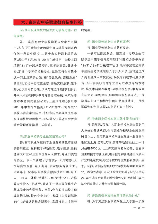 2015泰州中考招生指南(填报志愿\招生计