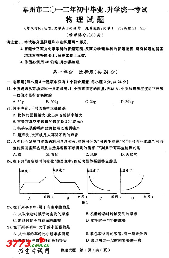 2012泰州中考初二地理、生物测试结果以何种方式呈现?