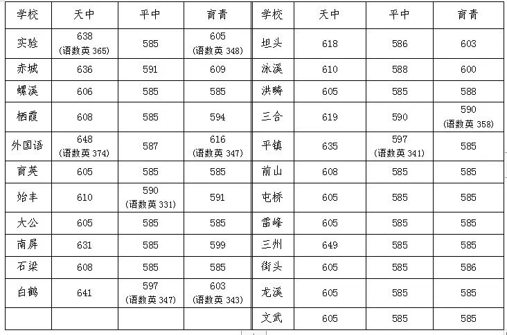 五、其他三所普通高中预估分数线(以实际录取分数线为准)