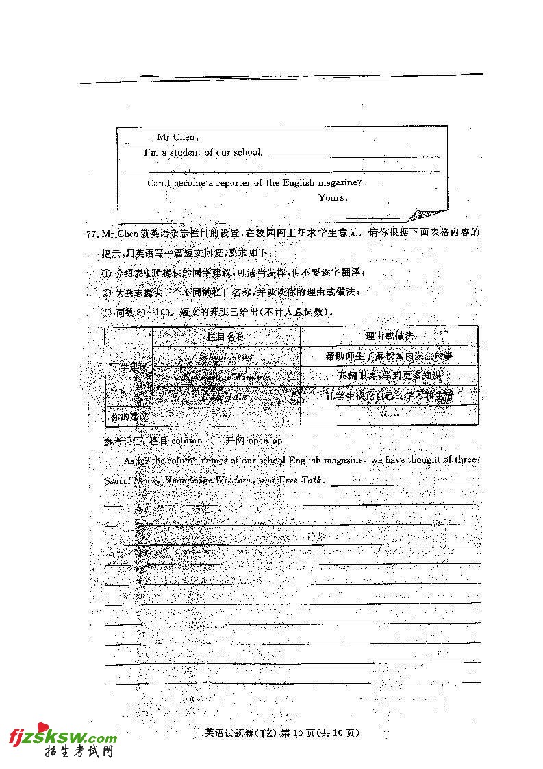 浙江台州2011中考英语试题及答案