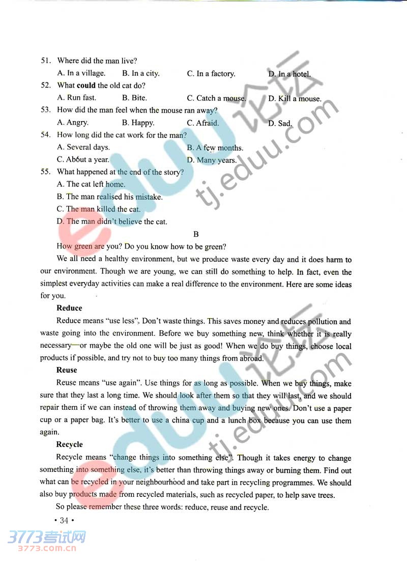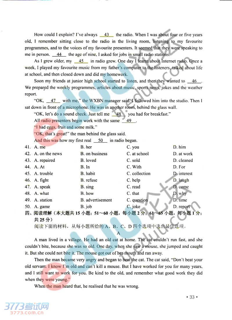 2014天津中考英语试题答案发布