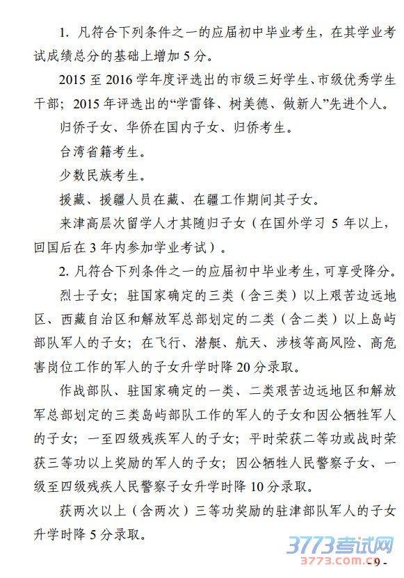 津市应届初中毕业生升学政策照顾申报及审核工作的通知》