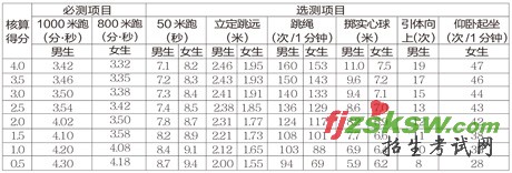 2010年度天津市初中毕业生升学体育考试成绩评分标准表