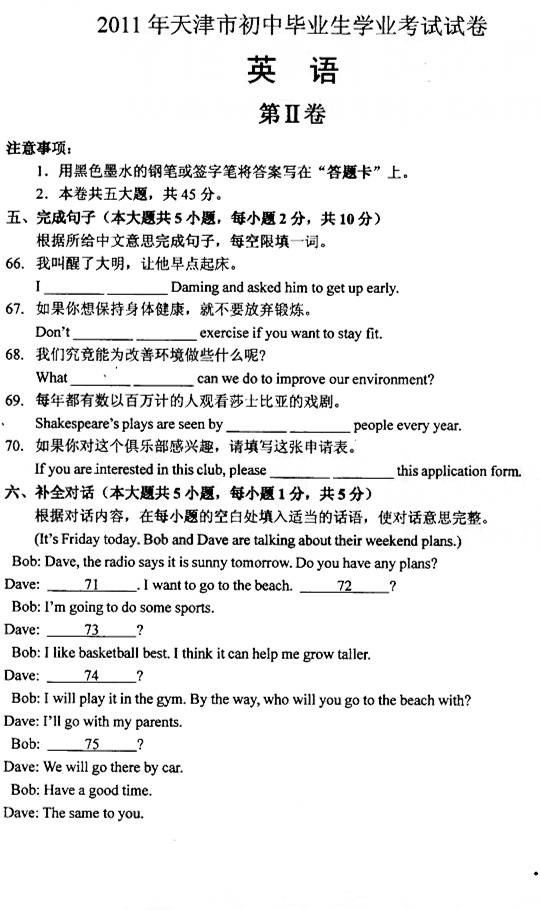 2011天津市初中毕业生升学体育考试考生基本信息统计表