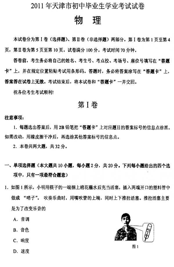 本试卷分为第I卷选择题 和第II卷 非选择题两部分 第I卷为1-4页 第II卷为5-10页 试卷满分100分 考试时间70分钟