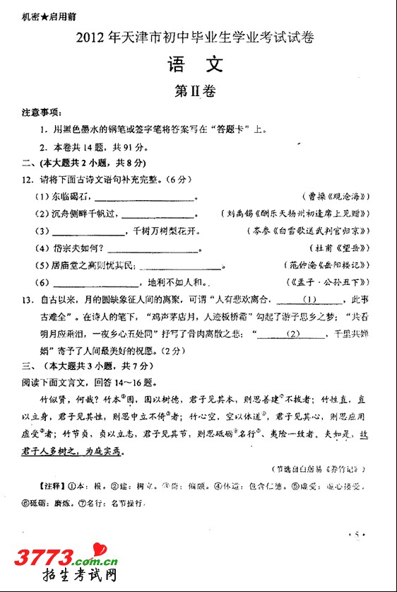 2012年天津市普通高中本市生源特长生分学校招生计划