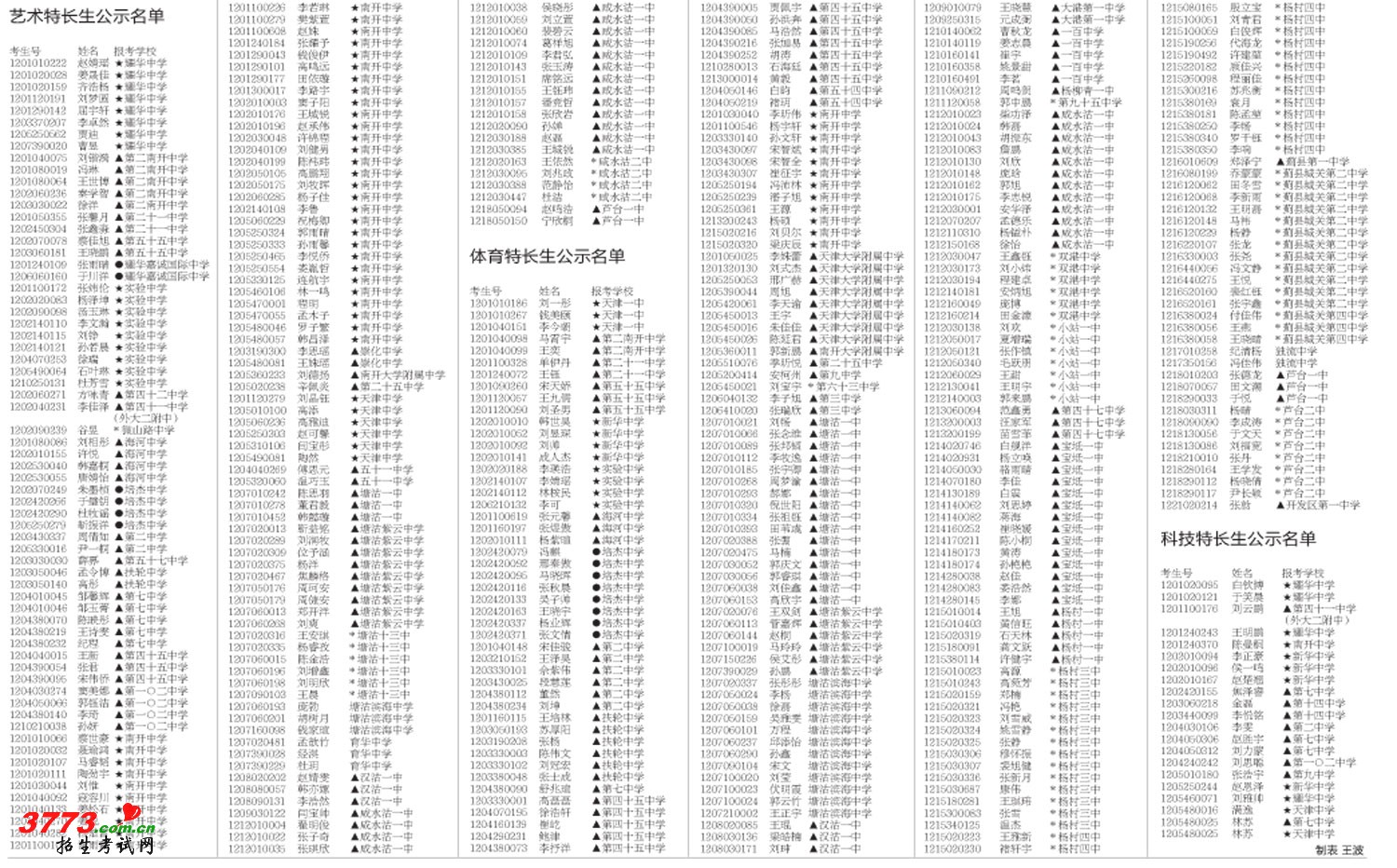 新报讯【记者 杜娟 实习生 马雨彤 通讯员 李方】按照教育部关于在招生考试工作中开展“阳光工程”的要求,为了充分体现公平、公正、公开的原则,市招生委员会高级中等学校招生办公室决定,将本市2012年中招艺术、体育和科技特长生名单向社会公示。市中招办举报传真电话:23769301。