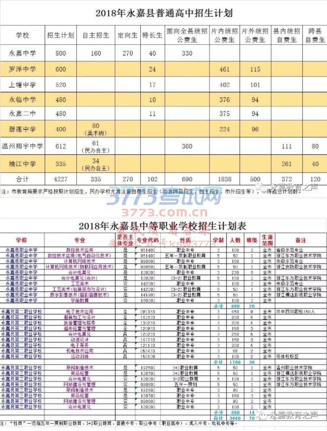 永嘉县普高职高招生计划家长注意:招生计划和分数段,关系到志愿填报!——小编提醒