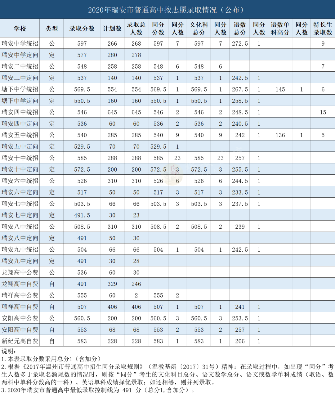 2020年瑞安普通高中志愿统招录取分数线均已公布,一起来看看~