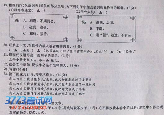 2013年温州中考语文试卷及答案发布