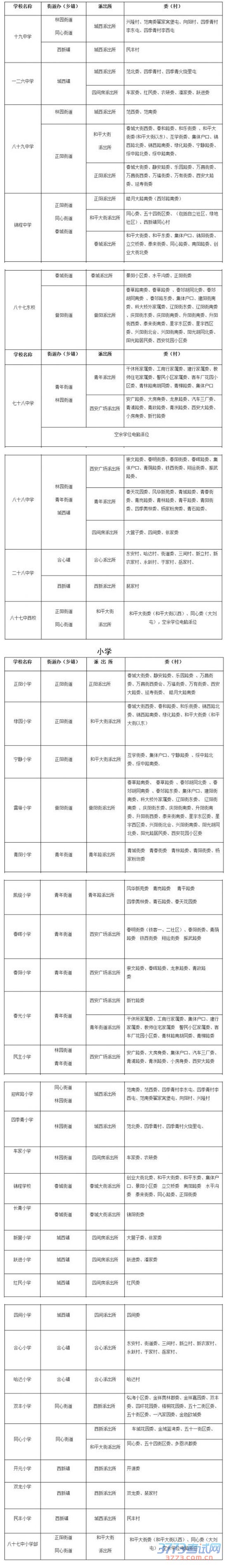 2015长春南关区公办小学初中学区划分方案