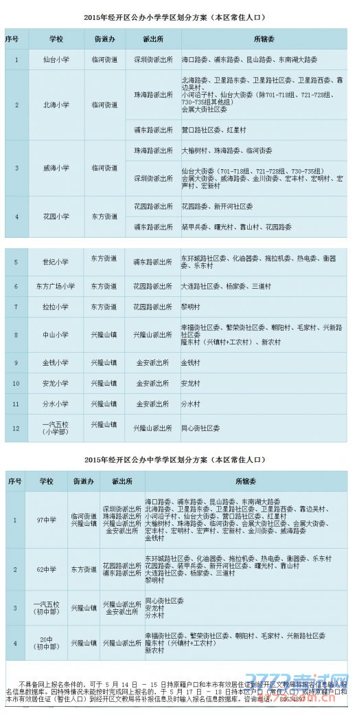 2015长春经开区公办小学初中学区划分方案