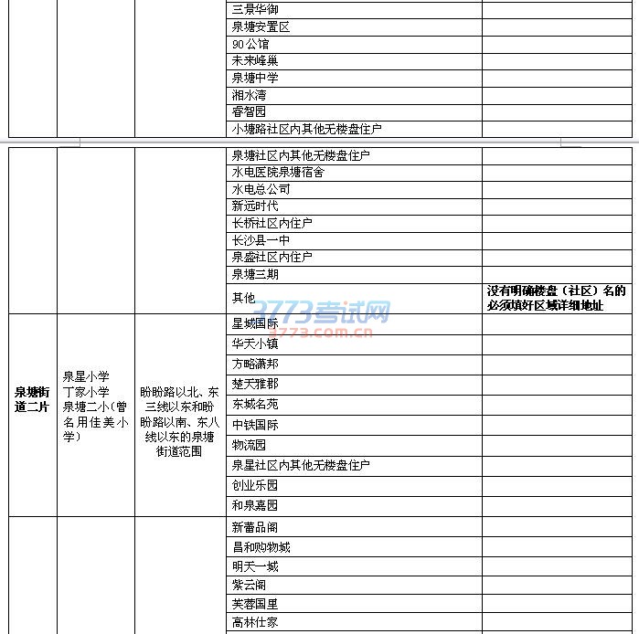 (三)、星沙、湘龙、泉塘、长龙、榔梨五个街道所属小学招生片区划分