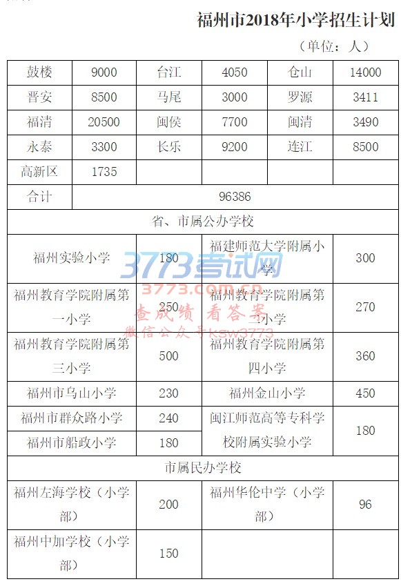 福州市2018年小学招生计划