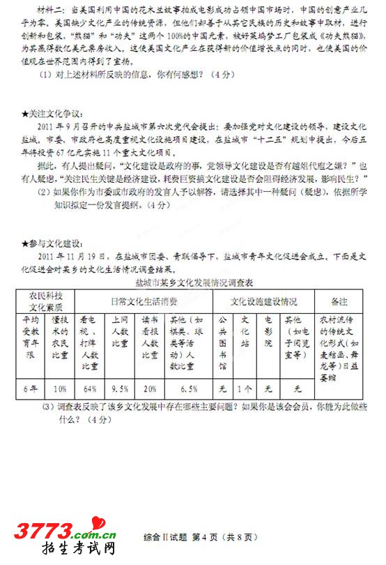 2012年盐城市中考思想品德试题及答案