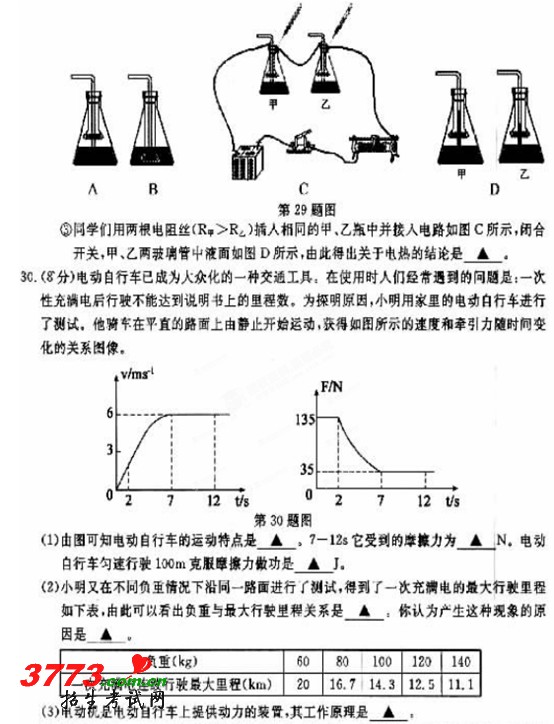 2012年扬州中考物理试题及答案