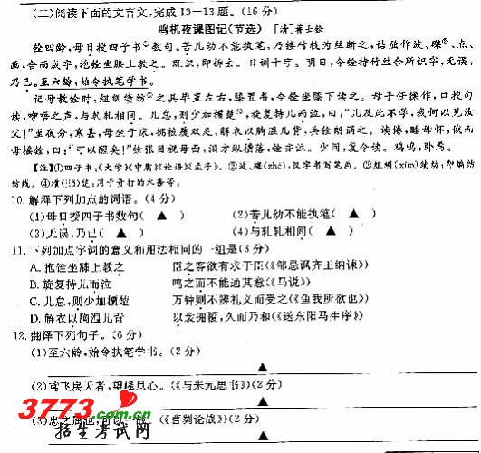 2012年扬州中考作文不能没有你与常德中考题撞车