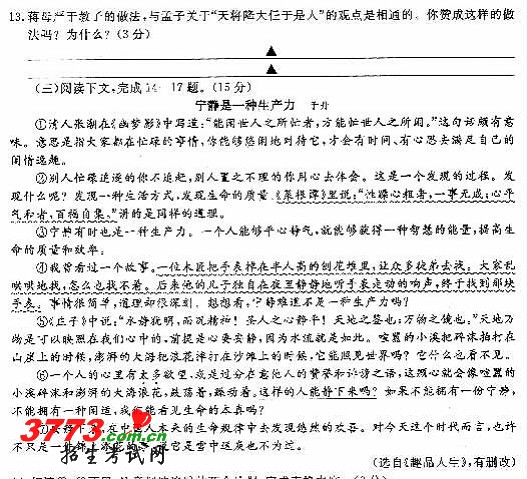 2012年扬州中考作文不能没有你与常德中考题撞车